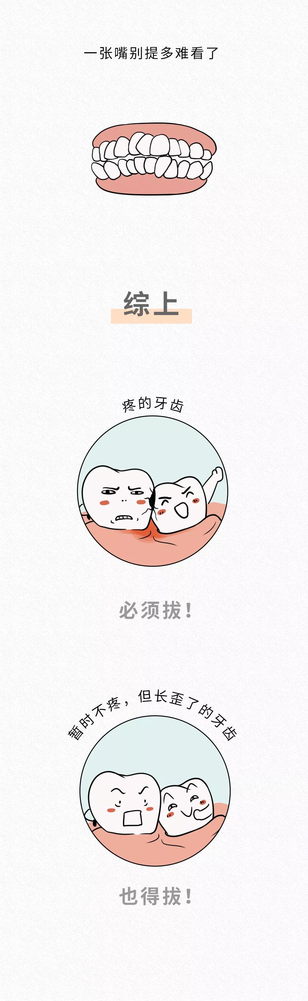 別的牙齒本來都挺著腰板長得直直的,斜著的智齒非要從旁邊推一把,時間一長旁邊的牙齒就被推歪了,因為口腔里的牙齒,排列的都很密集,所以一個歪了會連帶著把其他的牙齒也擠歪。后往往是,你所有的牙都會變得歪歪扭扭,一張嘴別提多難看了。