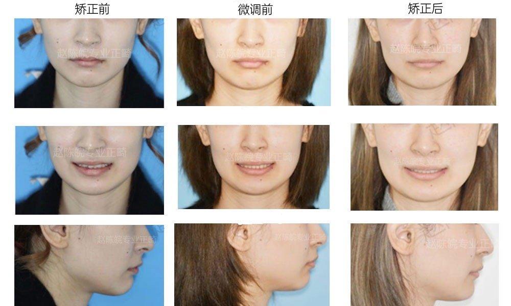 矯正前中后正面閉唇、露齒笑及側(cè)貌對(duì)比圖