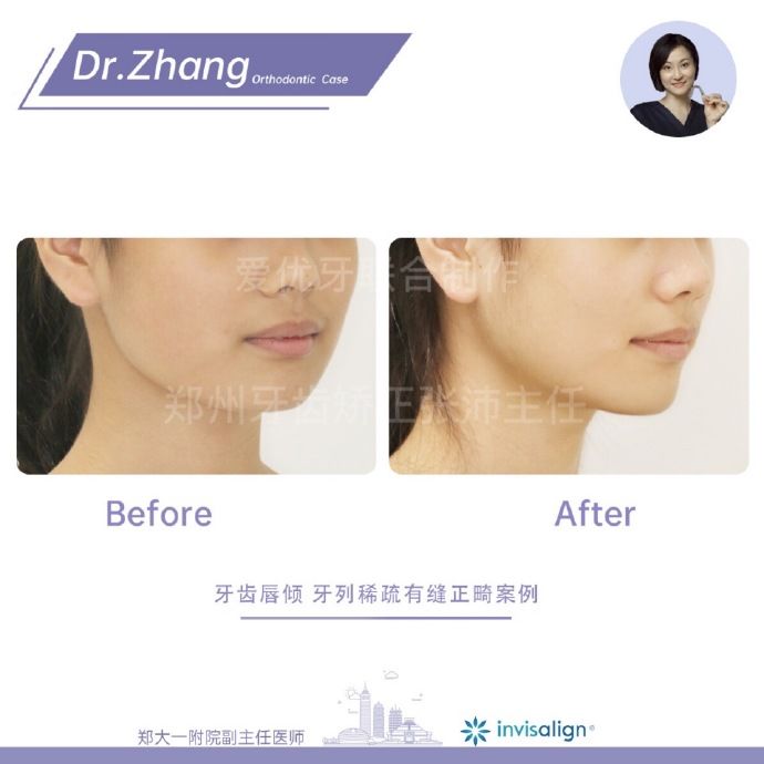 經(jīng)過(guò)2年左右的不拔牙隱形矯正,牙齒縫隙關(guān)閉,覆合覆蓋關(guān)系正常,咬合也恢復(fù)了。除此之外,唇部軟組織得到“釋放”,唇形更加好看,面型不管從正面還是側(cè)面看都好看了不少。