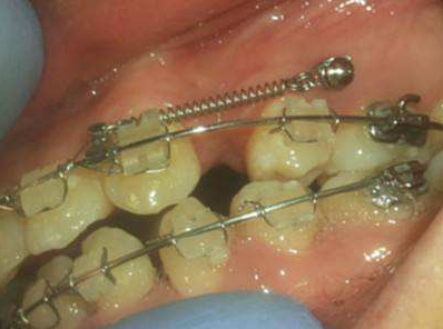 4.正畸前,牙縫過大,或是拔過牙,可利用植入骨釘來加強牙齒后退力量