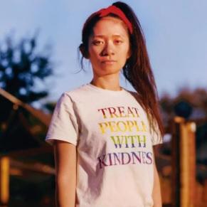 當在低成本、即興的公路片制作過程中遇到許多未知因素時,人們希望有一只穩(wěn)定的手指明方向。這就是你從趙婷身上得到的:一只穩(wěn)定的手和一張標記清晰的路線圖。作為導演,趙婷憑借我們的電影《無依之地》和之前的兩部影片《騎士》《永恒族》贏得了人們的信任,她有一種在柔情與敏感之間游刃有余的神奇技能——這讓她的故事講述真實并且具有獨創(chuàng)性。正是由于所有這些原因,趙婷才贏得了同仁的高度敬重。說到底,除此之外,夫復何求?她也是我認識的人中會穿著一件上面印有狗狗臉的抓絨外套——這件夾克是她在房車舊物交換會上買的——卻把它穿得像一件“華倫天奴”的。