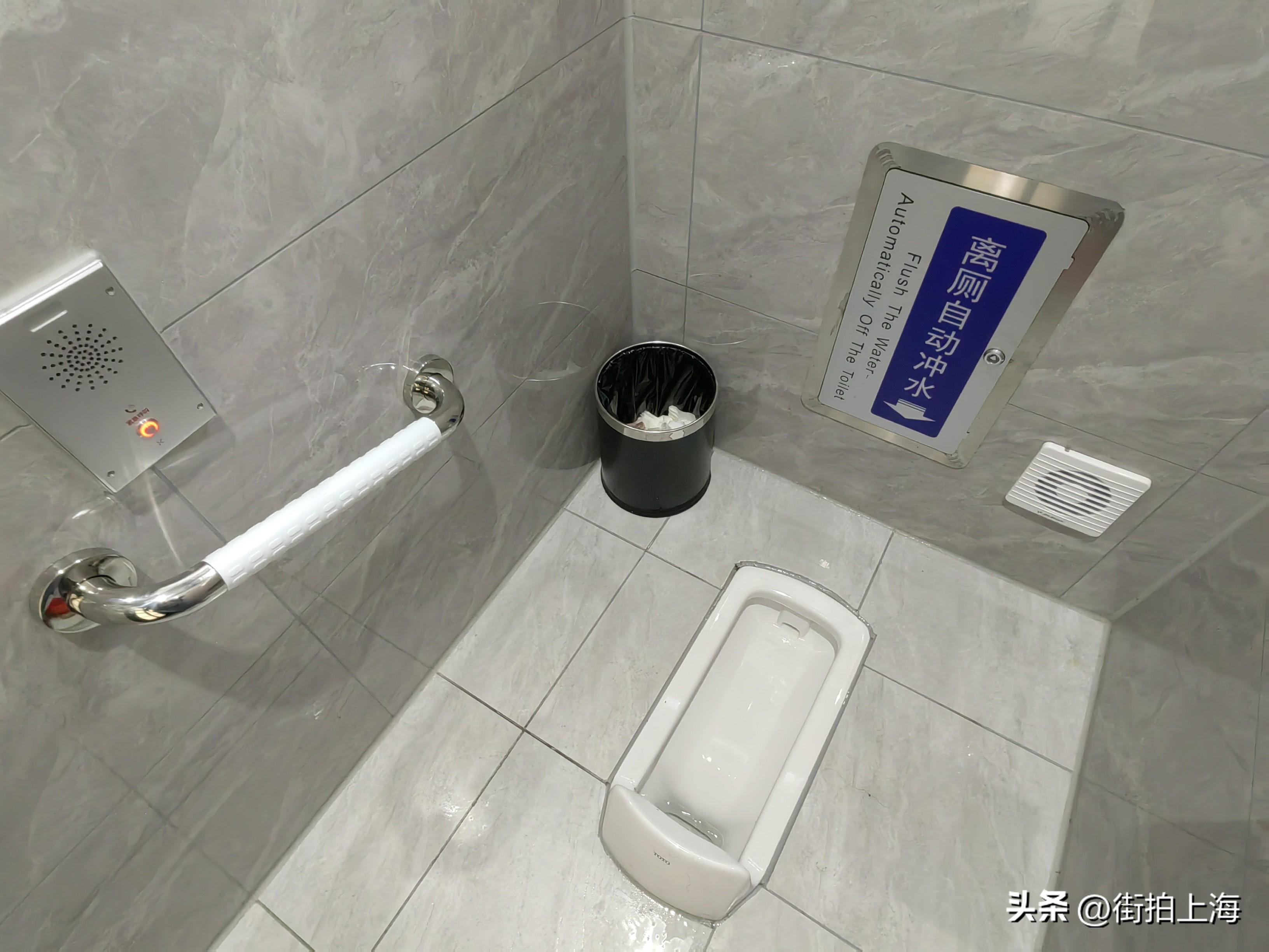 現(xiàn)場(chǎng)看到,這座公廁不僅能自動(dòng)統(tǒng)計(jì)人流量、自動(dòng)測(cè)量體溫、識(shí)別口罩佩戴、監(jiān)測(cè)環(huán)境氣體、防遺留語音提醒,而且還因?yàn)榘惭b了電動(dòng)霧化玻璃,具備了自動(dòng)切換玻璃透明度的功能,無人使用是廁所玻璃為全透明,有人時(shí)則自動(dòng)切換為霧化模式,如廁隱私。
