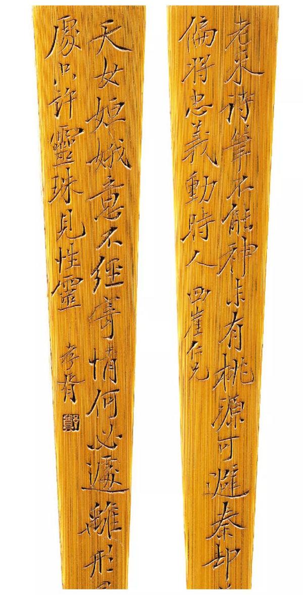 留青陽文金城畫花卉并高時(shí)豐行書竹扇骨