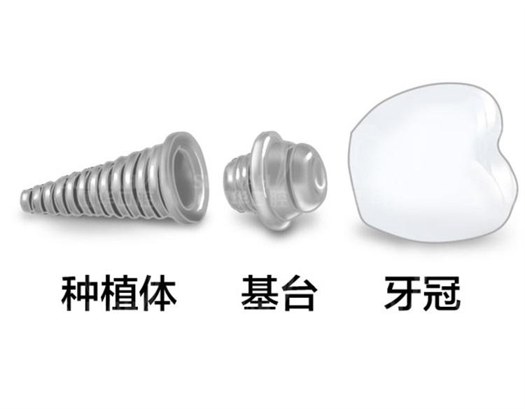 種植牙,指的是一種以植入骨組織的下部結(jié)構(gòu)為基礎(chǔ)來(lái)支持、固位上部牙修復(fù)體的缺牙修復(fù)方式。用通俗的話講,就是在缺失牙齒的位置安裝小螺絲,上邊套牙冠,由種植體(人工牙根)、基臺(tái)和牙冠這三個(gè)部分共同組建成一顆完整的種植牙。