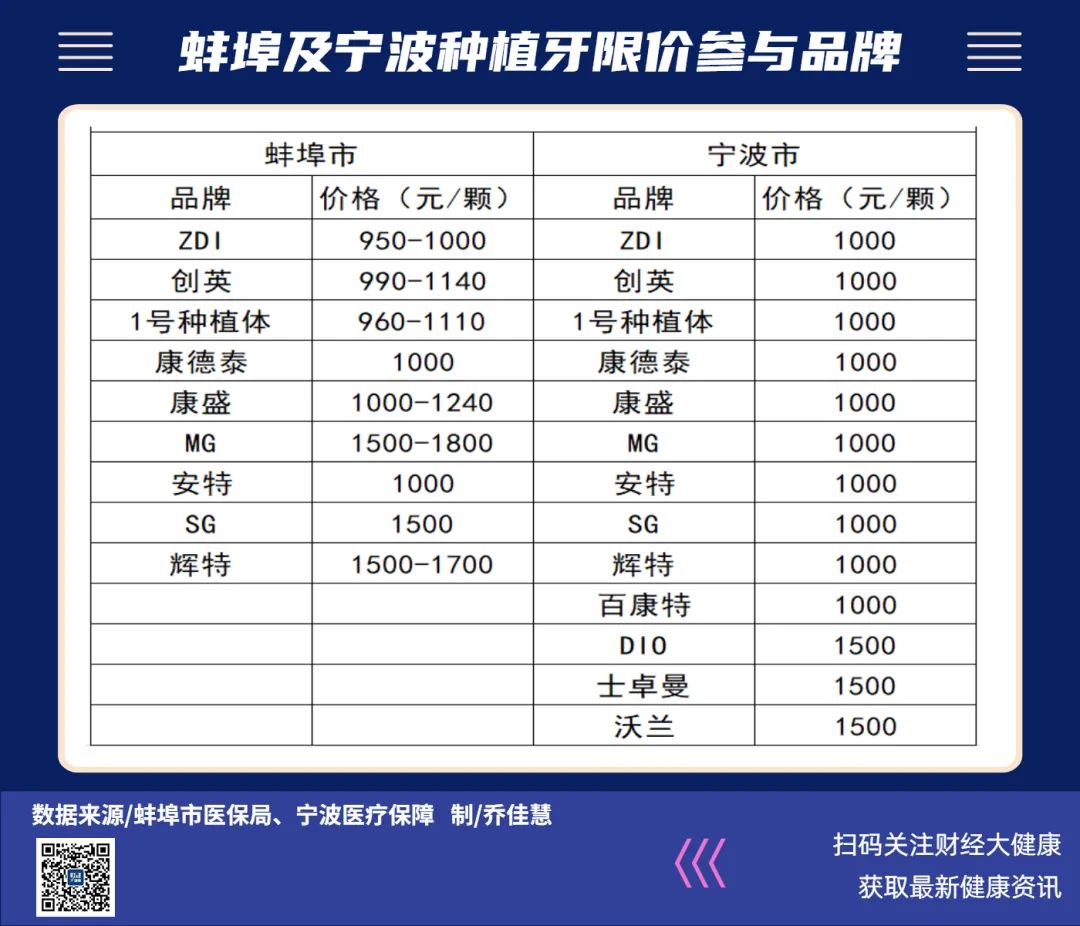 醫(yī)保限價:蚌埠VS寧波繼寧波種一顆牙3000多元后,蚌埠也推出了自己的種植牙醫(yī)保限價。