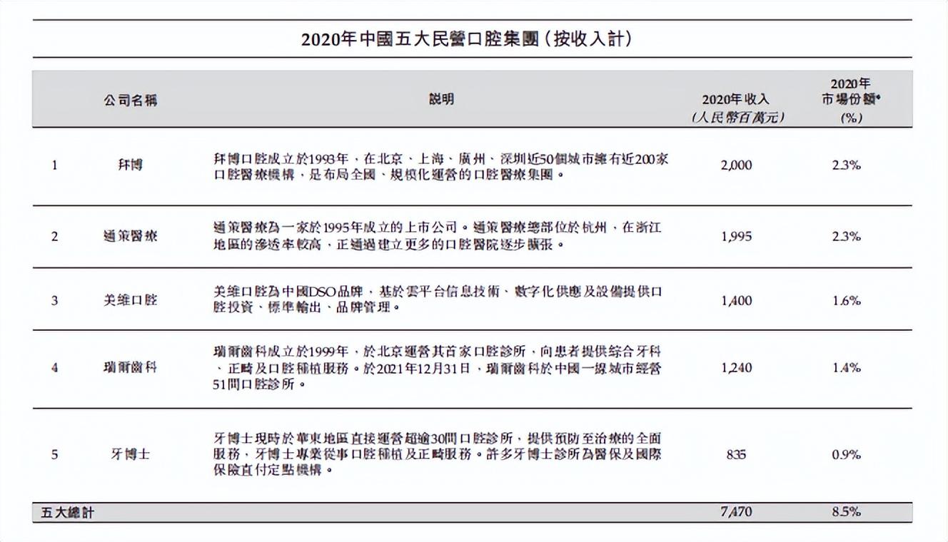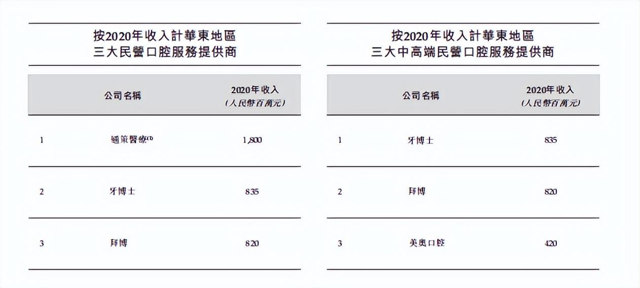 據(jù)招股書(shū)顯示,據(jù)2020年?duì)I收數(shù)據(jù),牙博士為第五大中國(guó)民營(yíng)口腔集團(tuán),前四位分別為拜博、通策醫(yī)療、美維口腔和瑞爾齒科。其中,通策醫(yī)療與瑞爾已經(jīng)成功上市,拜博與美維也經(jīng)歷了多輪融資,可見(jiàn)民營(yíng)口腔醫(yī)療機(jī)構(gòu)們都在向資本市場(chǎng)涌入。
