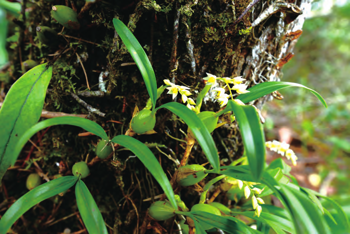 石仙桃是中藥名,因其假鱗莖碩大似桃,青翠猶如碧玉而得名。石仙桃為蘭科石仙桃屬植物,全屬截至2017 年 3 月接受的物種共約有 55 種,廣泛分布于熱帶亞洲至大洋洲。我國(guó)有14 種,另有 1 種于 2014 年之前發(fā)現(xiàn)的新物種。云南省是石仙桃屬植物分布中心,約有 12 個(gè)野生種。石仙桃株形佳,葉片四季常綠,密生多花小巧玲瓏,姿態(tài)優(yōu)美,花期較長(zhǎng),有些品種花香宜人,而且能耐寒、不怕酷熱,適應(yīng)性強(qiáng),可在城市園林中和家居美化栽培觀賞。除藥用外,也可做家庭煲湯食用。