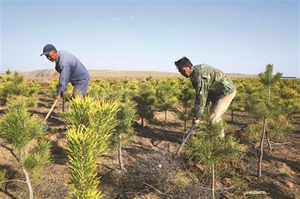 貧困戶對(duì)生態(tài)工程進(jìn)行管護(hù)。圖片來(lái)源:包頭日?qǐng)?bào)