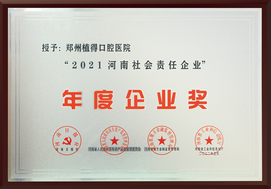 2022年7月2日,“2021河南社會(huì)責(zé)任企業(yè)暨社會(huì)責(zé)任突出貢獻(xiàn)企業(yè)家頒獎(jiǎng)盛典”在鄭州黃河迎賓館召開(kāi)。鄭州植得口腔醫(yī)院歷經(jīng)層層嚴(yán)格選拔,從400多家企業(yè)中脫穎而出,憑借其深耕口腔行業(yè)、堅(jiān)守品質(zhì)醫(yī)療、持續(xù)履行社會(huì)責(zé)任,斬獲“2021河南社會(huì)責(zé)任企業(yè)”殊榮。