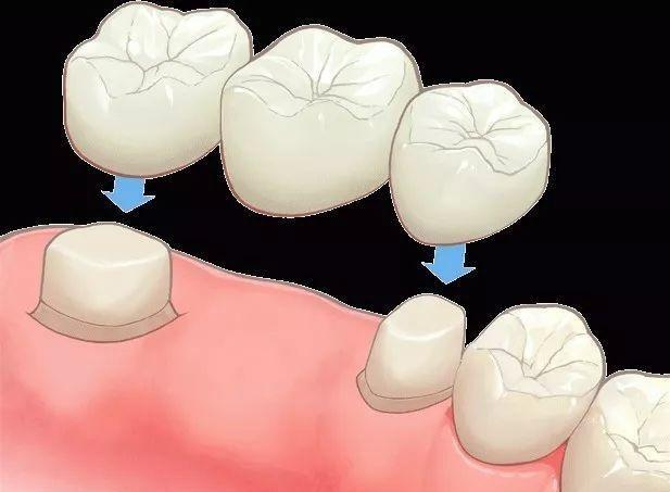 鑲烤瓷牙就是平時(shí)大家常說的鑲牙,通過搭橋的方式來修復(fù)缺失的牙齒: