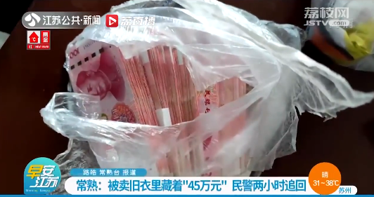12.45萬財產(chǎn)藏舊衣被家人15元賣了,民警兩小時幫追回:近日,江蘇常熟的袁先生將40萬元存單和5萬元現(xiàn)金藏到一包舊衣服里,卻被不知情的家人以15元的價格當(dāng)廢品賣掉。民警通過監(jiān)控還原了舊貨回收老板的行駛軌跡,帶著袁先生一家驅(qū)車20多公里找到對方,悉數(shù)找回財物,全程僅用兩個小時。事后,袁先生送去錦旗感謝民警。(江蘇新聞)