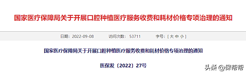 (1)公立醫(yī)療機構口腔種植項目實行政府指導價管理的地區(qū),各省級醫(yī)療保障部門要在2022年12月底前重新制定公布政府指導價。