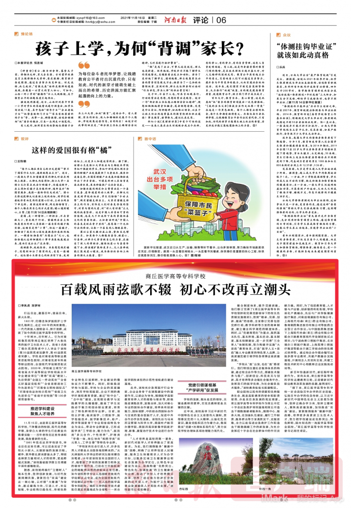“接下來(lái),商丘醫(yī)學(xué)高等專科學(xué)校一定會(huì)汲取百年辦學(xué)的歷史經(jīng)驗(yàn),弘揚(yáng)百年辦學(xué)的優(yōu)良傳統(tǒng),以新時(shí)代中國(guó)特色社會(huì)主義思想為指導(dǎo),堅(jiān)持正確辦學(xué)方向,堅(jiān)持立德樹(shù)人,聚焦高質(zhì)量發(fā)展,加快推進(jìn)‘雙高’建設(shè)。緊緊圍繞服務(wù)‘健康中國(guó)’戰(zhàn)略,培養(yǎng)更多高素質(zhì)衛(wèi)生技術(shù)人才,努力把學(xué)校建設(shè)成優(yōu)勢(shì)突出、特色鮮明、國(guó)內(nèi)知名的醫(yī)學(xué)高等職業(yè)院校。”商丘醫(yī)學(xué)高等??茖W(xué)校黨委書記胡世甫說(shuō)。
