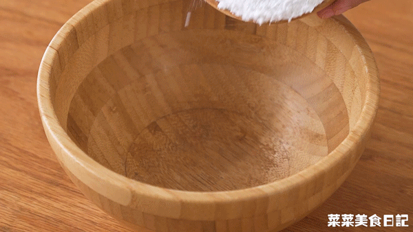 1.碗中倒入粘米粉100g、180g常溫水、10g油攪拌均勻,靜置30分鐘