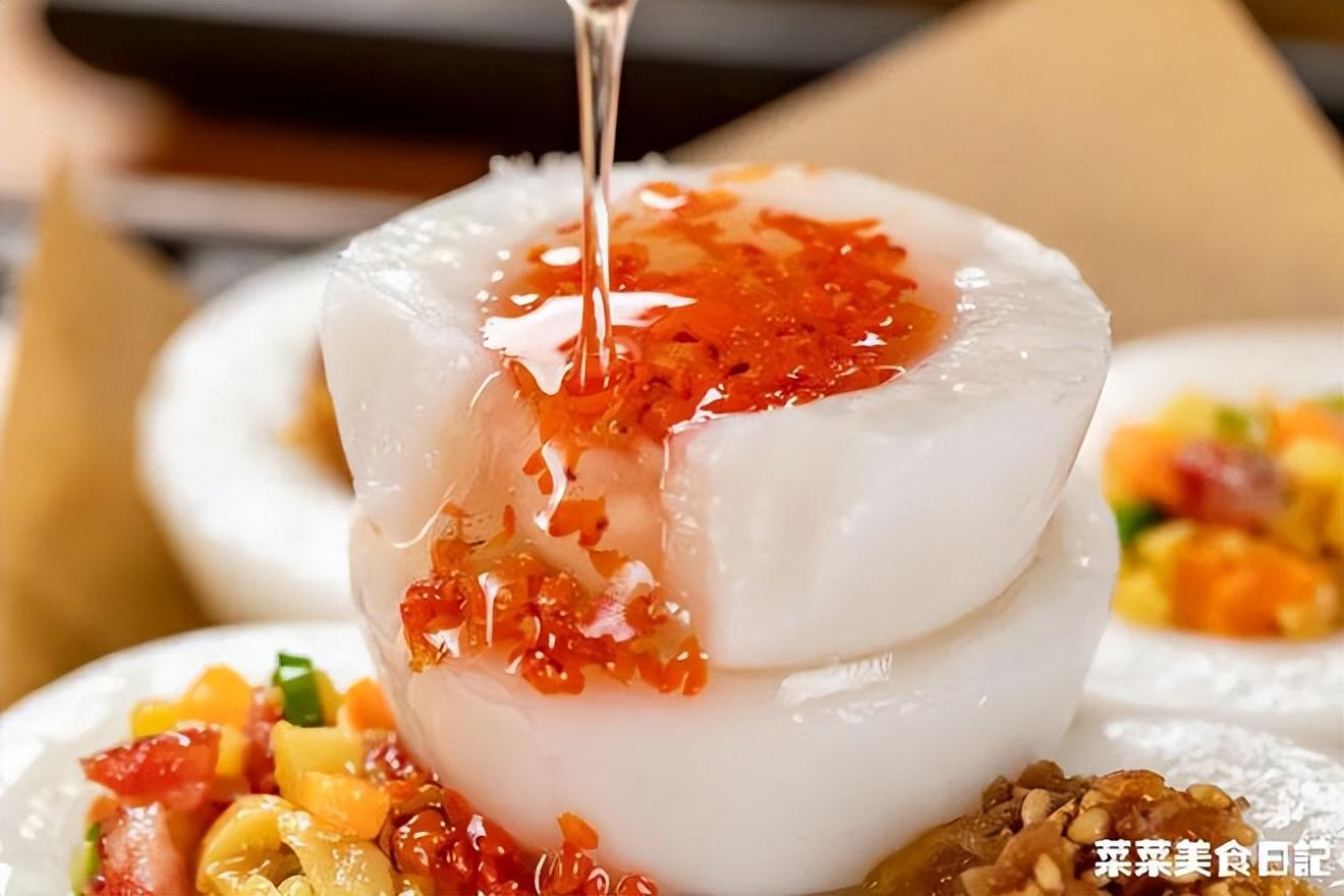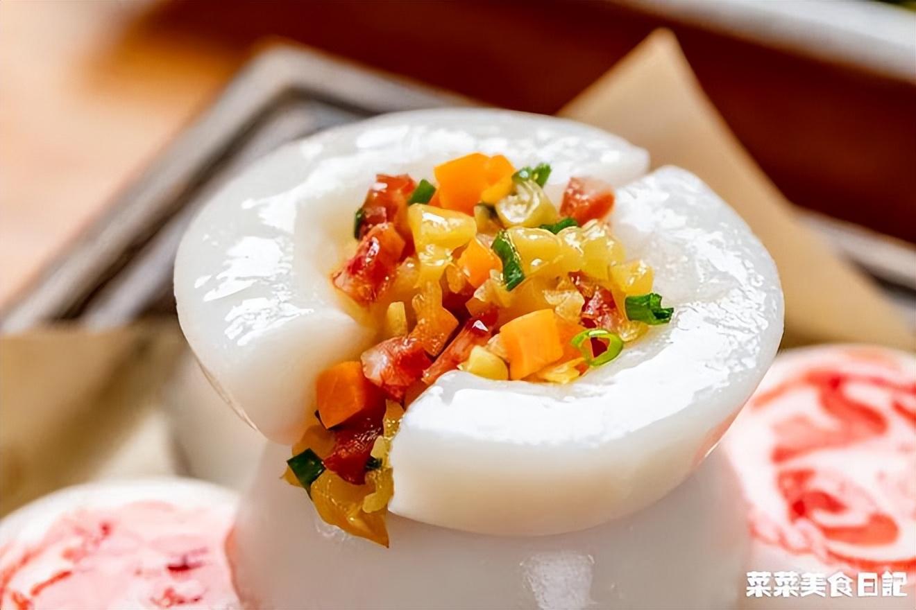 ps:老式缽仔糕用米漿做,糕體乳白,新式缽仔糕用淀粉做,糕體晶瑩。