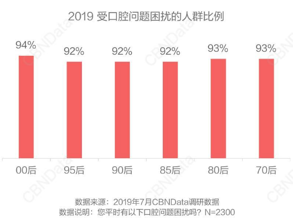據(jù)新《2019飲食習(xí)慣與口腔健康白皮書》顯示,在我國有口腔問題的人群高達(dá)93%,簡單來說,就是100個(gè)人里面只有7個(gè)人口腔屬于正常,更為惡劣的是,在這些有問題的人中,就診的比例僅為10%。