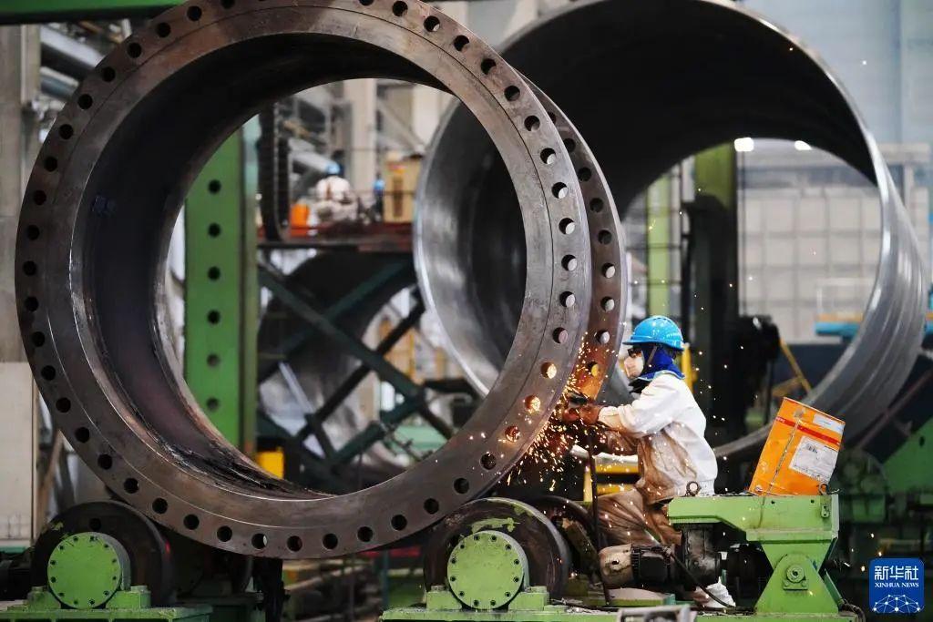 4月14日,在哈電集團哈爾濱鍋爐廠有限責(zé)任公司車間,工人在進行生產(chǎn)作業(yè)。新華社記者 王建威 攝