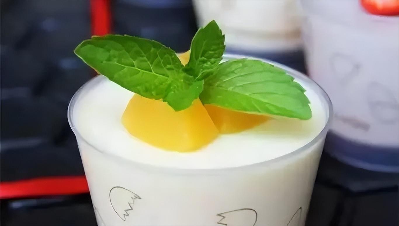 材料:牛奶 70g,酸奶140克,黃桃泥250g,吉利丁片14克,淡奶油 150g,糖30g