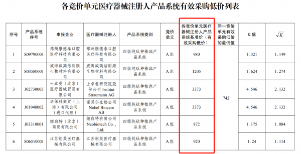 以士卓曼的四級純鈦種植體產(chǎn)品為例,其有采購低價為3373元,但由于高有申報價的限制,其終報價需低于2380元,價格直降30%。