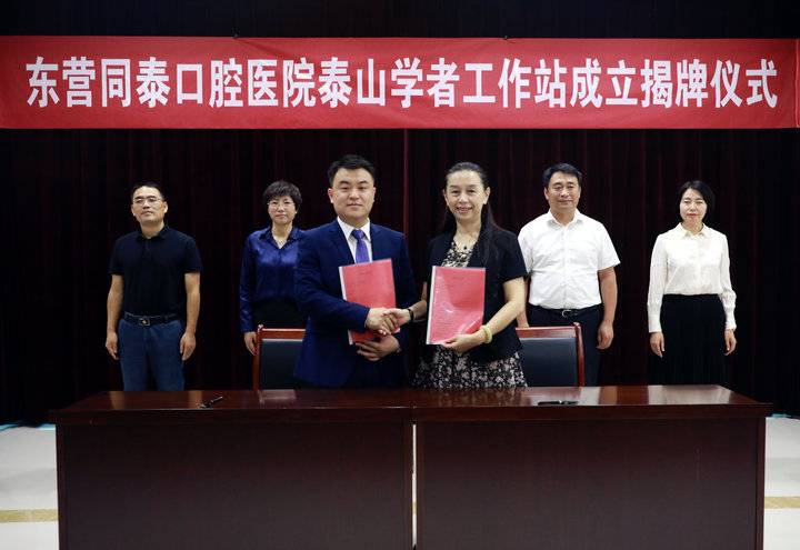 揭牌儀式上,東營同泰口腔醫(yī)院院長李文濤首先致詞,同泰口腔醫(yī)院是東營地區(qū)一家集預(yù)防、醫(yī)療、科研、保健、防治結(jié)合于一體的現(xiàn)代化口腔??漆t(yī)院,已開設(shè)種植、正畸、修復(fù)、兒牙科等8個科室。煙臺市口腔醫(yī)院是同泰口腔醫(yī)院合作單位,已定期聘請高級職稱、副高級職稱專家來醫(yī)院坐診,并做學(xué)術(shù)講座、疑難病例會診。同泰口腔醫(yī)院還是濱州醫(yī)學(xué)院口腔醫(yī)學(xué)院、齊魯醫(yī)藥學(xué)院社會實踐、見習(xí)、實習(xí)基地。使教學(xué)理論變?yōu)榻虒W(xué)實踐,使虛擬教學(xué)變?yōu)檎嬲拿鎸γ娴慕虒W(xué),為山東口腔行業(yè)培養(yǎng)了人才。