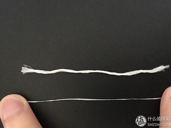 取下一小段牙線,這貨是介樣的。沒錯,這就是牙線和普通牙線的區(qū)別了!當你用手拉伸牙線的時候它會變得像上上張圖一樣,變得很細,容易滑進牙縫,在牙縫中當你的手稍微一放松,它就會變得像這張圖上一樣,可以增加與牙縫的接觸面積,輕易的清潔牙縫。了解到這款產品我還得感謝@teardrop的那一篇牙線使用評測的曬單。