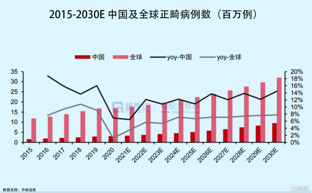 根據(jù)統(tǒng)計(jì)局和平安證券數(shù)據(jù),我國(guó)目前正畸和牙齒種植的市場(chǎng)滲透率分別只有0.68%和0.15%。滲透率雖有限,但兩者的客單價(jià)很高,所以市場(chǎng)規(guī)模分別達(dá)到了347億元和271億元,可觀。