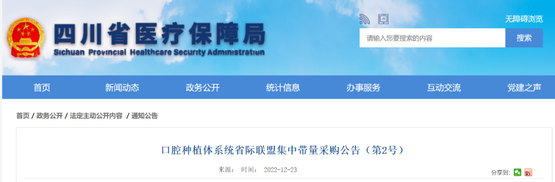 1.種植牙集采即將開標(biāo)12月23日晚,據(jù)四川省醫(yī)療保障局官網(wǎng)信息,口腔種植體系統(tǒng)集采規(guī)則《口腔種植體系統(tǒng)省際聯(lián)盟集中帶量采購文件》正式發(fā)布。文件顯示,種植牙集采計(jì)劃于2023年1月11日在成都正式開標(biāo)。