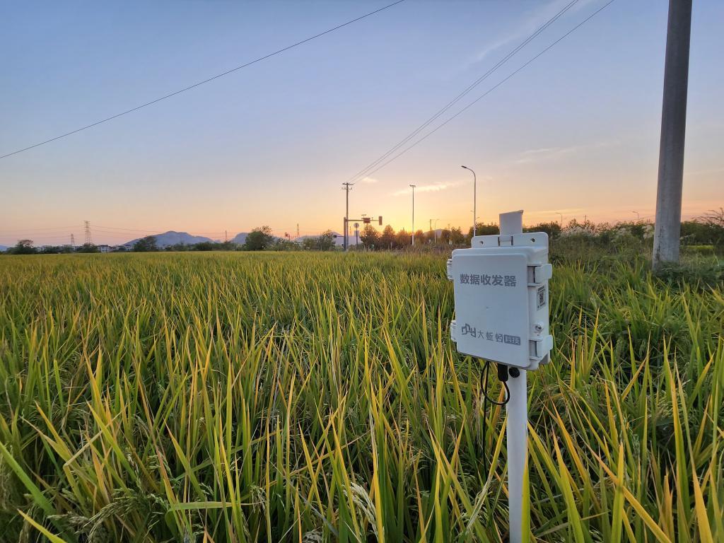 蕪湖三山經(jīng)濟開發(fā)區(qū)一處稻田里的數(shù)據(jù)收發(fā)器。新華社記者 趙金正 攝
