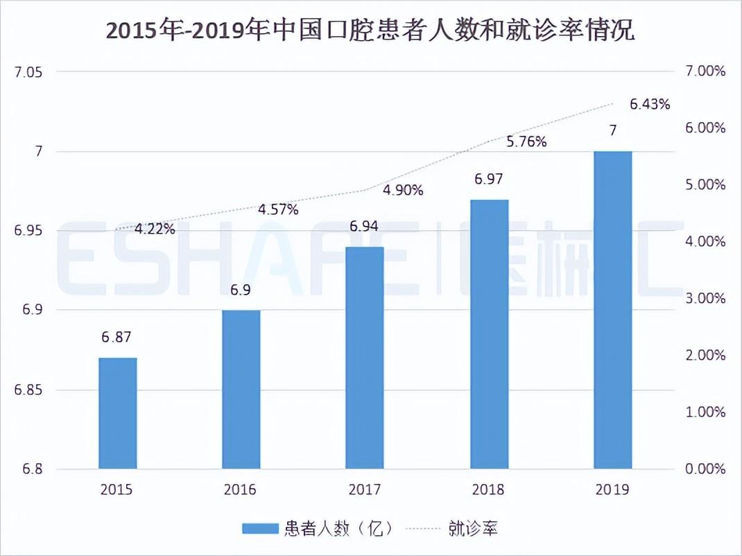 截至2019年,我國口腔患者人數(shù)已達(dá)到7億人,約占國民總?cè)藬?shù)的50%,而就診率僅為6.43%。我國患有口腔疾病的群體逐年上升,但就診率卻得不到較大提升,口腔疾病的調(diào)節(jié)仍然被很多人忽視。
