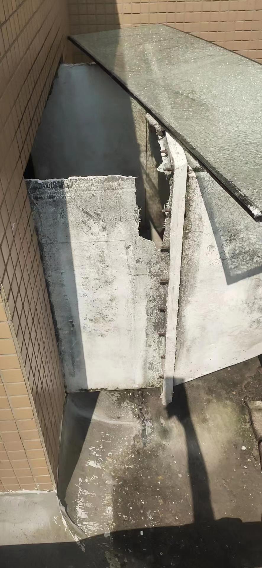 彭女士表示,消防排風管原來是完好的,也能達到使用要求?!?月4日排風管被踩爛后,物業(yè)用了一塊玻璃先臨時蓋起來。8月7日又聯(lián)系工人在現(xiàn)場做了防護欄,下一步將維修好?!贝送?,從現(xiàn)場碎片看,斷裂痕跡都是新鮮的。