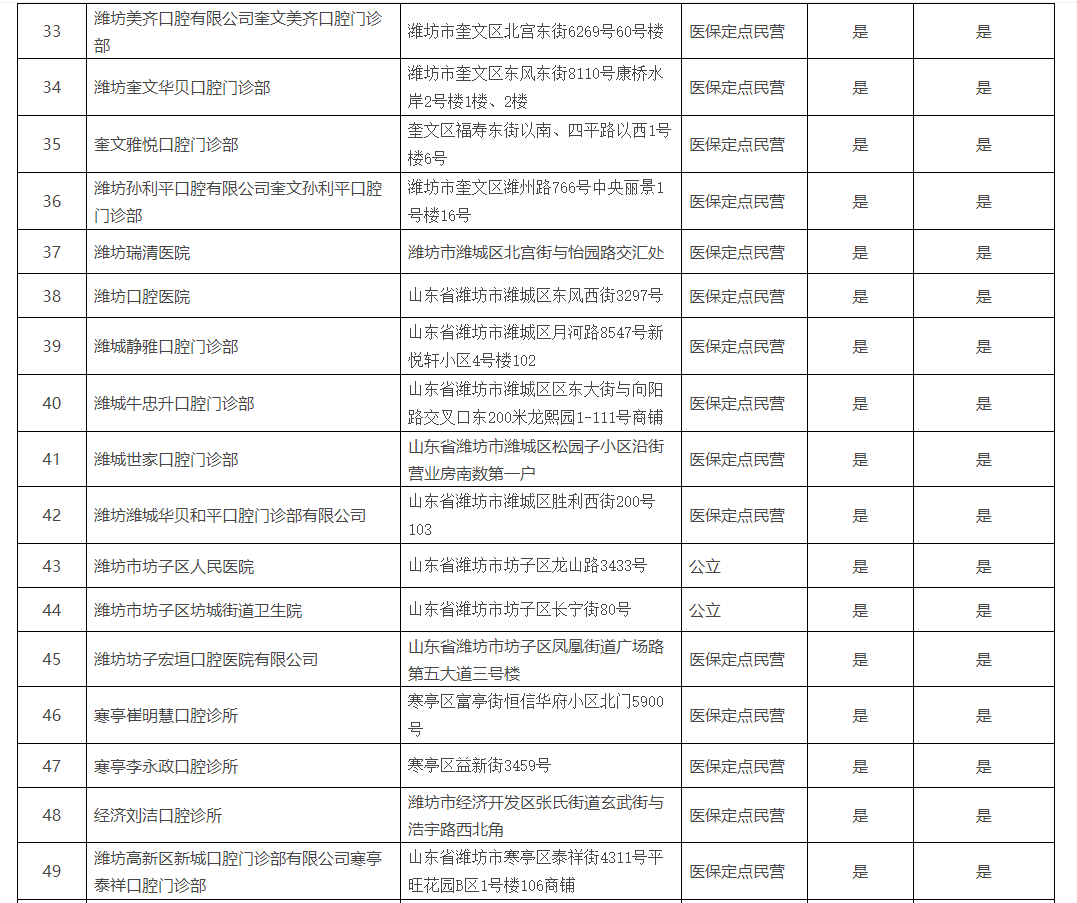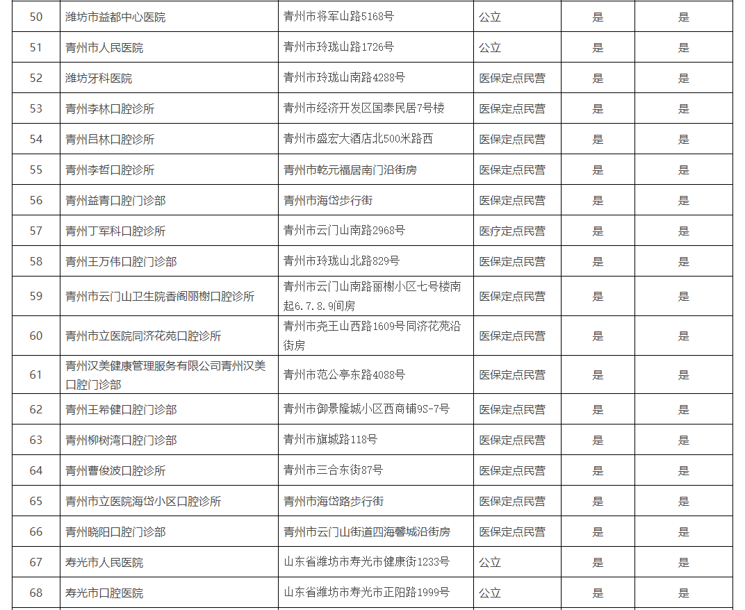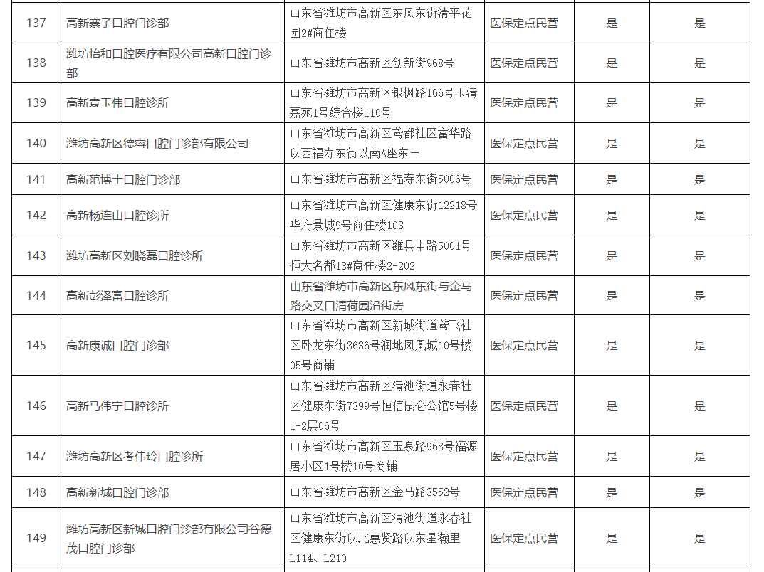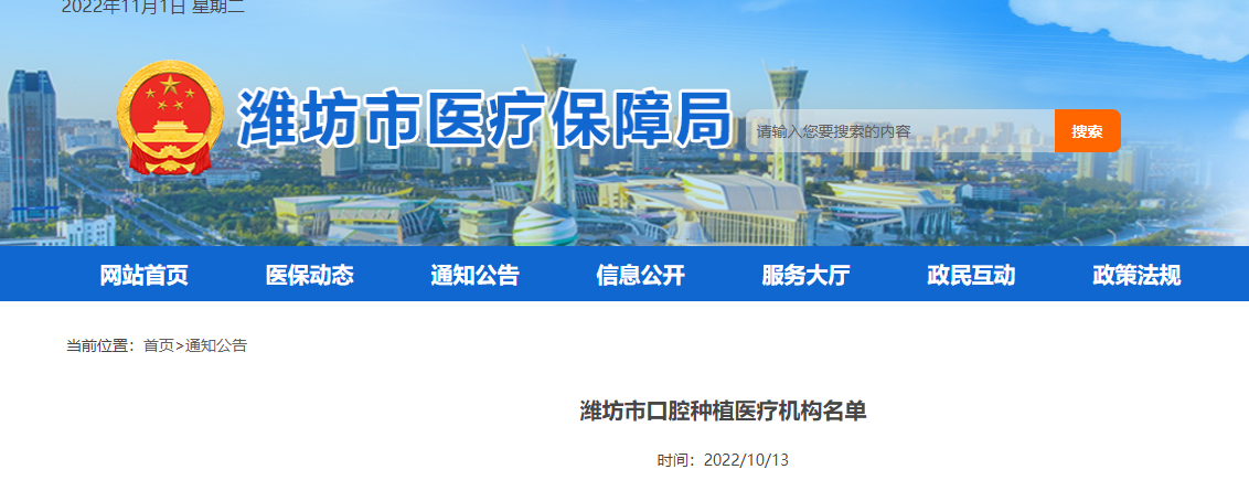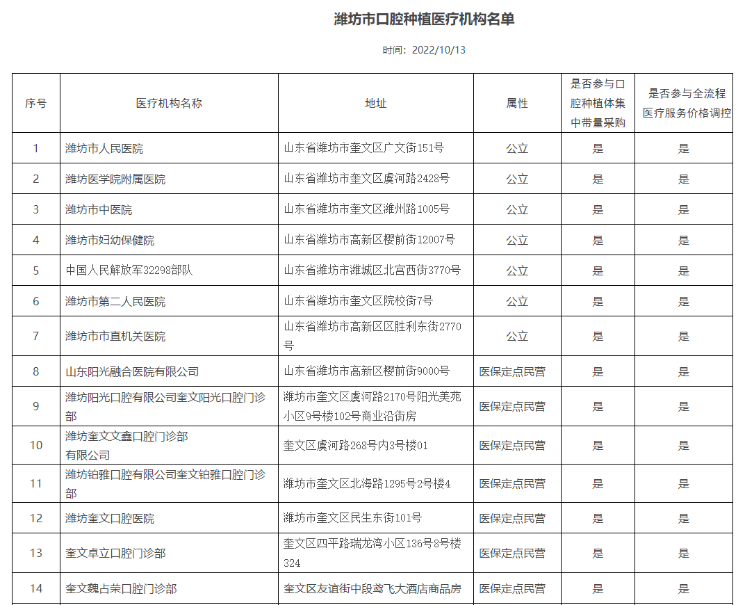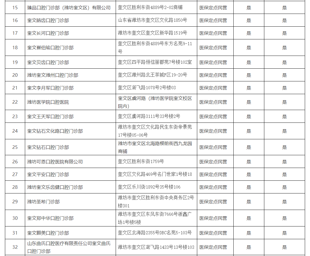 《濰坊市口腔種植醫(yī)療機(jī)構(gòu)名單》