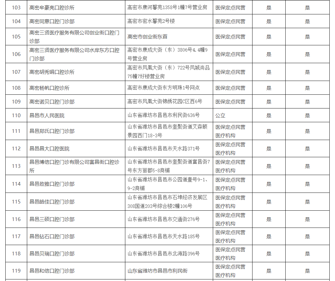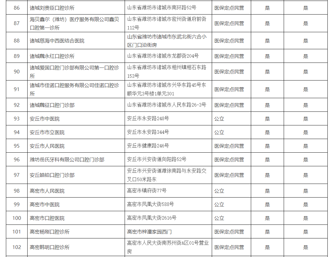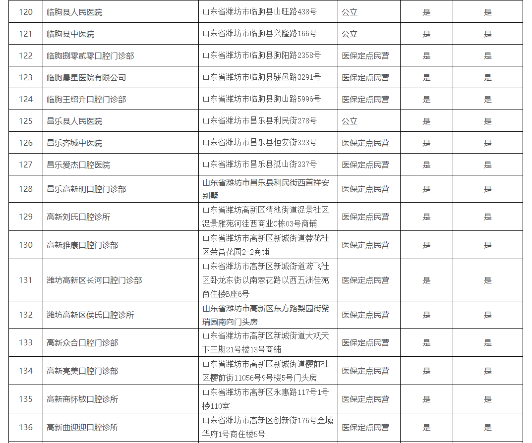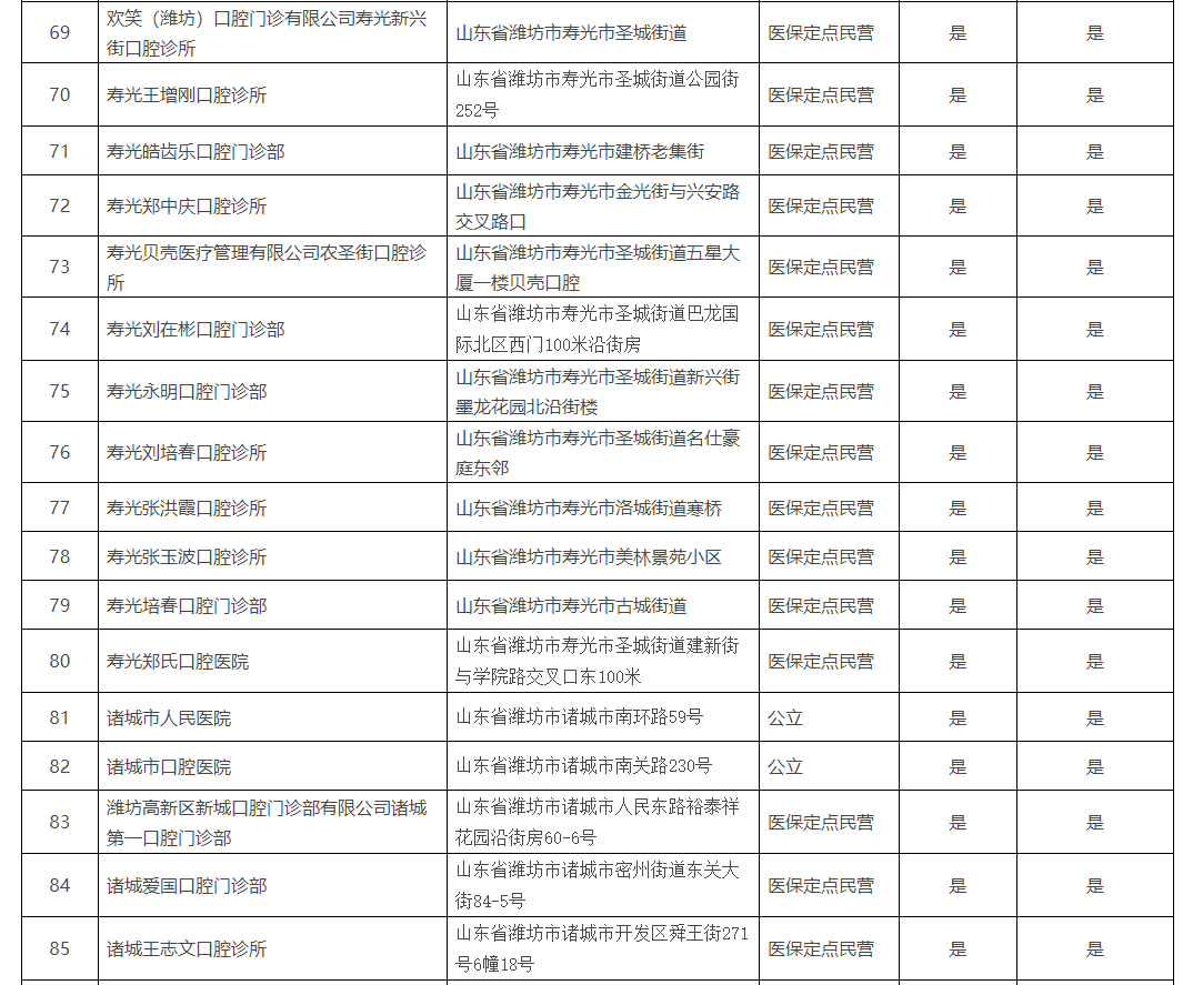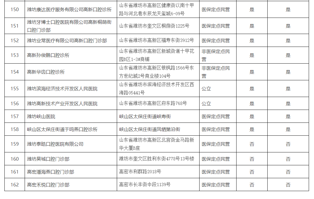 《濰坊市口腔種植醫(yī)療機(jī)構(gòu)名單》