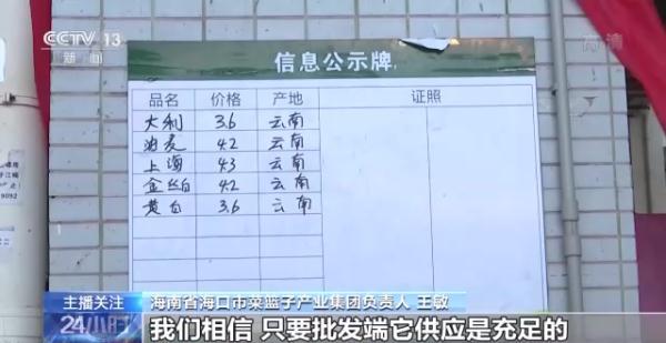 海南省??谑胁嘶@子產(chǎn)業(yè)集團(tuán)負(fù)責(zé)人 王敏:這次,我們把云南菜調(diào)過(guò)來(lái),在批發(fā)環(huán)節(jié)發(fā)力,我們相信,只要批發(fā)端它供應(yīng)是充足的,那么菜價(jià)也會(huì)穩(wěn)定。