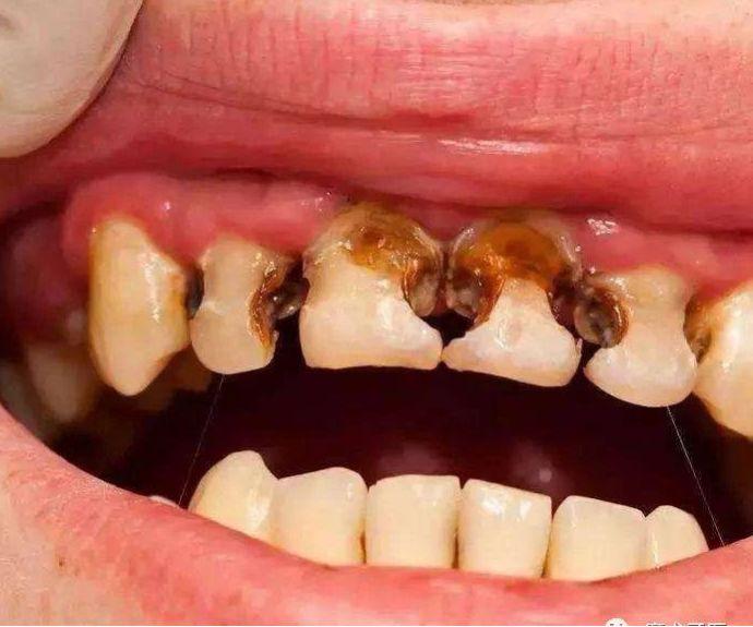 齲齒,俗稱蛀牙,蟲牙,但與蟲子完全搭不上邊,一定要搭的話,那蟲子就是細(xì)菌——變形鏈球菌為主。它作為一種產(chǎn)酸菌,只有在含糖和碳水化合物豐富的基質(zhì)上進(jìn)行化合作用才會酸蝕牙齒,而甜食,牛奶,碳酸飲料等等為它提供了充足條件。牙齒從酸蝕到脫礦崩解需要一定的時間,上面所見的嚴(yán)重齲齒病例,本來有相當(dāng)長的時間去進(jìn)行早期干預(yù),無論是醫(yī)學(xué)干預(yù)還是行為改變,都能不同程度地影響疾病進(jìn)展,不致形成“豁耙齒”的境地。