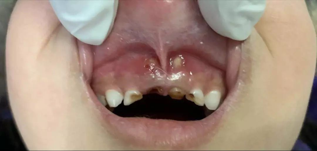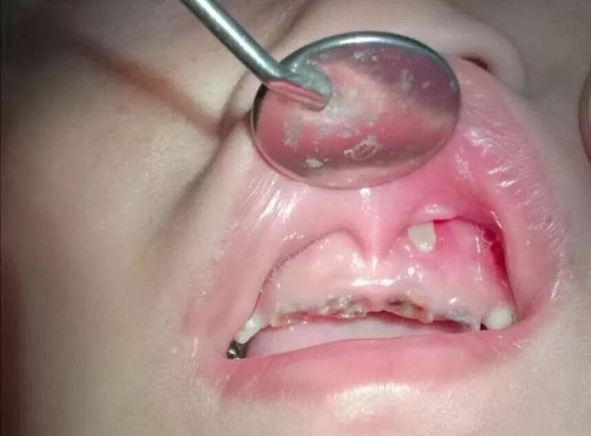 而且有這樣的一種現(xiàn)實,哪怕全口牙齲壞也鮮有家長為此主動去看牙醫(yī),更多的是當(dāng)孩子出現(xiàn)了劇烈牙痛或者牙齦上長出了令家長們驚恐的如圖示腫物(恐癌心理)才被迫就診,這是一種中國式特色——反正乳牙都是要換掉的,單純齲齒治不治無所謂。