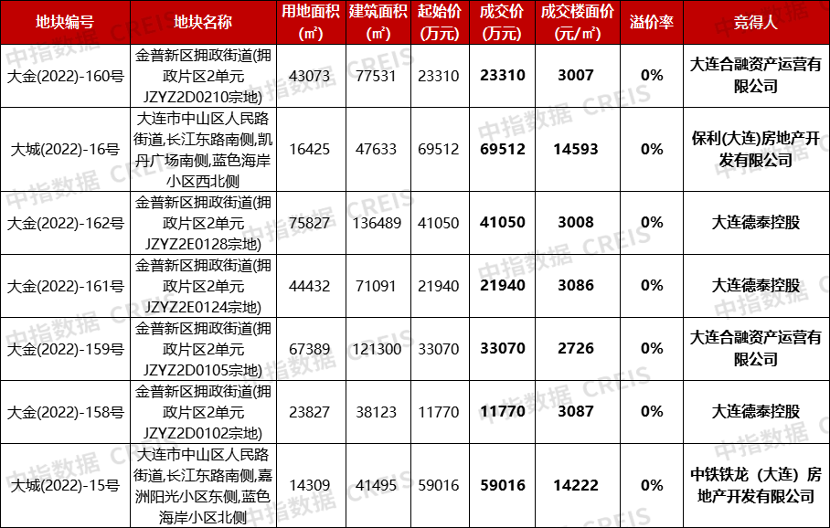 而位于金普新區(qū)的5宗宅地中,大金(2022)-158號、161號、162號3宗地塊均由大連德泰控股以底價(jià)競得,成交總價(jià)7.48億元;另外兩宗地塊大金(2022)-159號、160號由大連合融資產(chǎn)運(yùn)營有限公司以底價(jià)競得,成交總價(jià)為5.6億元。