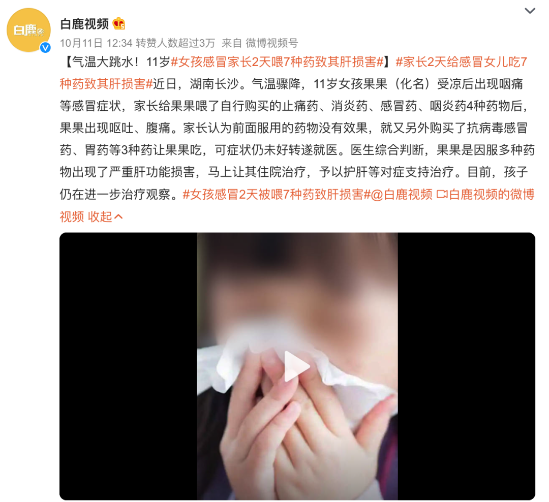 這不,前一陣兒就有一個(gè)熱搜新聞——家長(zhǎng)2天給感冒女兒吃7種藥致其肝損害。