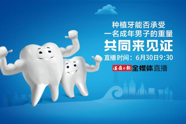 記者了解到,6月30日上午,牙博士口腔溫嶺機構(gòu)將在溫嶺電視臺舉辦大型科學(xué)求證活動?,F(xiàn)場,先由該院院長簡小沖將種植牙植入木頭內(nèi),再吊起80公斤的成年人。此外,現(xiàn)場還有錘子砸牙冠、汽車碾牙冠等實驗,向市民展示種植牙的牢固性。