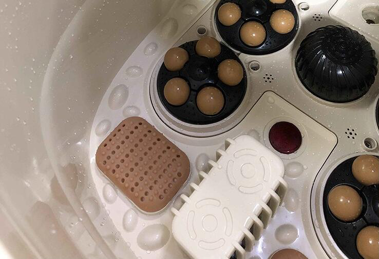 這就是一款典型的泡腳+按摩的足浴盆了,機身內(nèi)部有6個按摩滾輪和2個振動板,前腳掌、腳心、腳跟都能按摩到,腳底的多個穴位也都能受到刺激,起到養(yǎng)生保健的作用;并且還有氣泡噴出口,開啟之后就會有大量氣泡沖擊腳底,泡腳也會更加舒服。泡腳功能自然是基本的了,750W加熱管擁有10重防觸電措施,恒溫加熱能讓洗腳水的溫度恒定,合適的水溫才好舒適的“腳感”。
