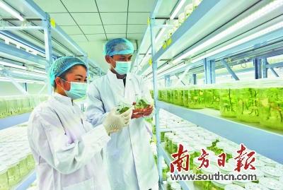 “都說先進(jìn)種苗技術(shù)是現(xiàn)代農(nóng)業(yè)的芯片,在這里,我們確實(shí)像造‘芯片’一樣育苗!”據(jù)該基地的技術(shù)人員介紹,紅薯苗脫毒技術(shù)是一項(xiàng)高新農(nóng)業(yè)增產(chǎn)技術(shù),是生物技術(shù)、病毒學(xué)技術(shù)和良種繁育技術(shù)的有機(jī)結(jié)合應(yīng)用。由于紅薯苗是無(wú)性繁殖,傳統(tǒng)的育苗方法難以避免紅薯病毒的傳續(xù),造成紅薯的逐代減產(chǎn)降質(zhì)。現(xiàn)代的紅薯苗脫毒技術(shù),指在無(wú)菌條件下,將紅薯苗莖尖長(zhǎng)0.2-0.3毫米,不帶病毒的分生組織在合適的培養(yǎng)基上經(jīng)過離體培養(yǎng)誘導(dǎo)再生苗。莖尖苗經(jīng)檢測(cè)確認(rèn)不帶病毒后在防蟲網(wǎng)棚或空間隔離條件下進(jìn)行擴(kuò)繁。擴(kuò)繁出來(lái)的苗就是脫毒紅薯苗。