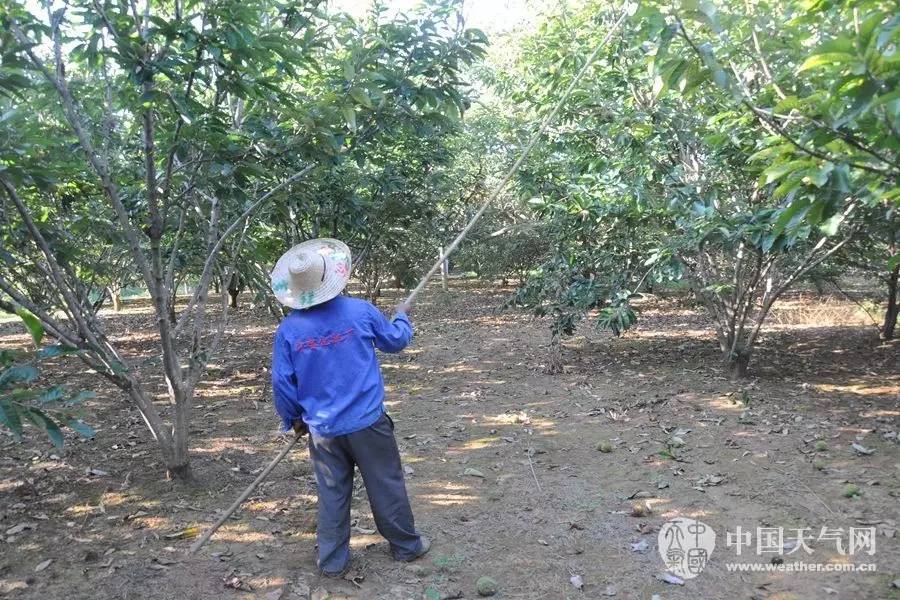 栗農(nóng)在用竹竿打板栗(攝影:梁麗莉)