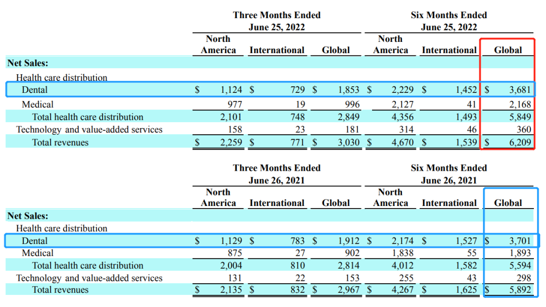 北美:牙科業(yè)務(wù)營(yíng)收22.29億美元(+3%),占比61%。