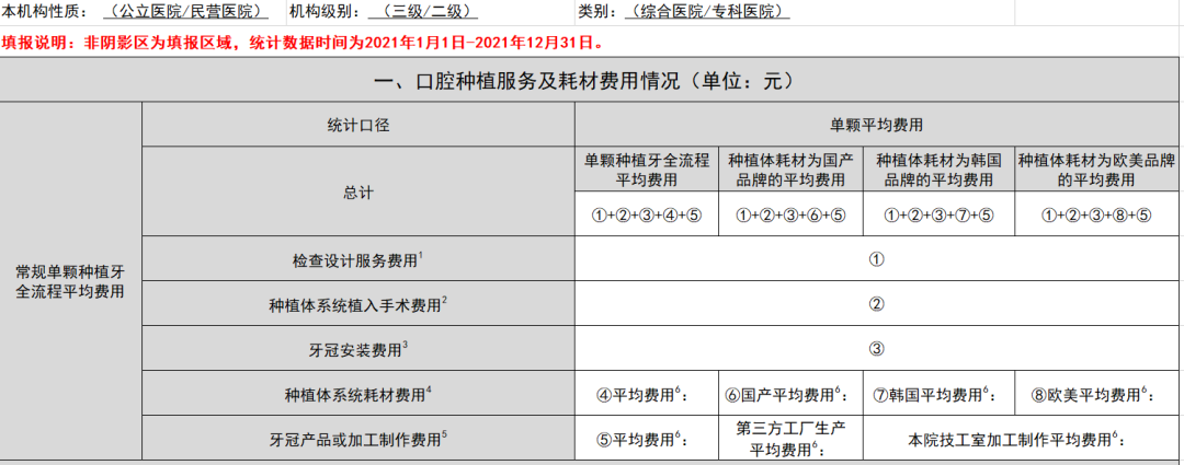 ▲口腔種植醫(yī)療服務(wù)和耗材收費(fèi)基本情況統(tǒng)計(jì)表(部分截圖)