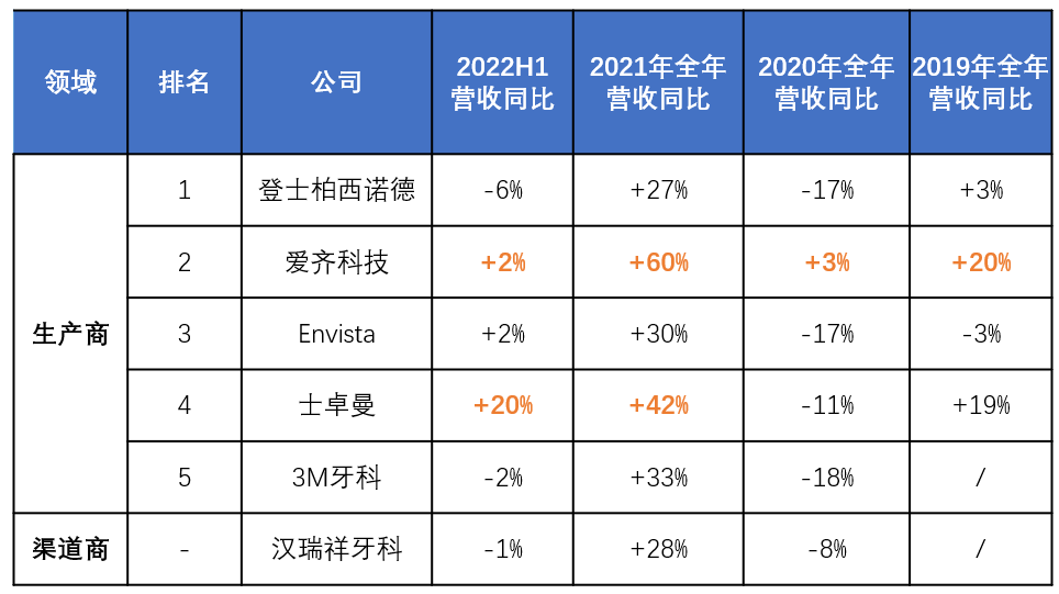 Envista 排名第三,增速與愛齊科技并列第一(+2%)。