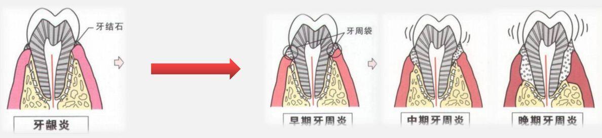 牙周炎的發(fā)展過程。