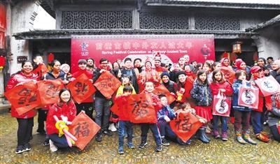 百名外國友人歡聚在前童古鎮(zhèn),體驗(yàn)中國年俗。丁繼敏攝/光明圖片