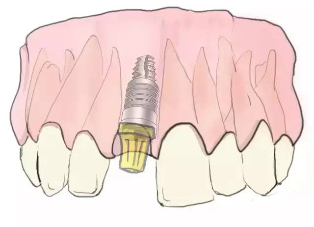 種植釘安裝上修復(fù)基臺(tái)。