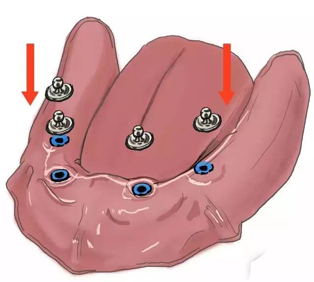以下頜總義齒為例:
