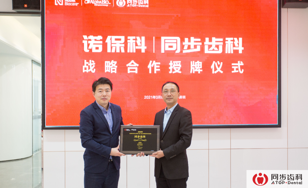 2021年3月9日,卡瓦集團(tuán)諾??婆c同步齒科戰(zhàn)略合作“晶鉆”授牌儀式在同步齒科深圳后海旗艦門(mén)診舉行,來(lái)自卡瓦集團(tuán)上海諾??乒痉N植事業(yè)部的許邦達(dá)總經(jīng)理與同步齒科彭江總經(jīng)理作為雙方代表出席了授牌儀式。