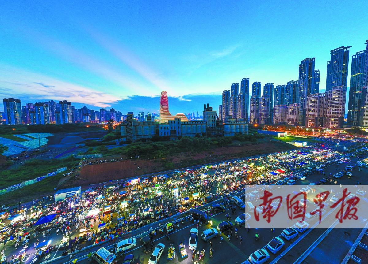 日前,有公告在網(wǎng)上傳開,稱南寧市陽峰路夜市因?yàn)槭┕ぴ?,將?月27日閉市。這意味著紅極一時的五象新區(qū)網(wǎng)紅夜市,馬上要跟市民說再見了。圖為陽峰路夜市燈火通明,吸引眾多市民前去打卡。 記者 鄒財麟 攝(廣西新聞網(wǎng)-南國早報)